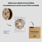 Les bobines sont enroulées mécaniquement mais contrôlées à la main pour assurer qu'aucun emmêlement de filament ne mettra en péril vos prints en créant des variations d'extrusion. Le diamètre de l'intérieur de la bobine a également été élargi pour faciliter une alimentation constante et fluide.