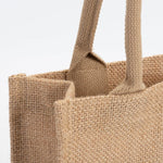 Sac de shopping en jute, idéal pour une impression par sublimation. L'impression se fait sur un insert en lin blanc.